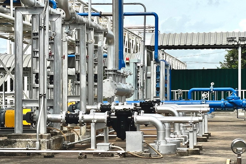 配管設備の流量データを遠隔で監視したいが、設備周辺の電波環境が悪くWiFi設備が無いため無線化の課題がありました。そこで、流量データを無線機のバケツリレーにより中継することで、WiFiや4G等の電波環境が無い場所においてのデータ収集を可能にしました。