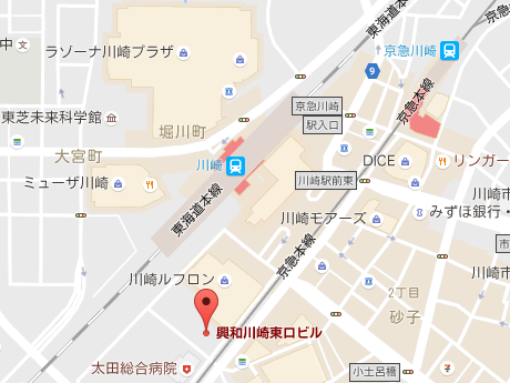 JR Kawasaki station is 20-25 minutes south from Tokyo Central Station by green and orange JR Tokaido train or by blue JR Keihin-Tohoku electrical train. Keihin (Kyuko) Kawasaki station is also near-by.