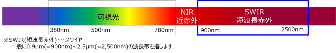 SWIRは、可視光では見分けにくい物質の違いを「吸収性・反射特性」に基づいて識別できます。水分を黒く映す特性を持ち、霧・煙・粉塵などの影響を受けにくいため、悪環境下でも安定したセンシングが可能です。これにより、従来のカメラでは難しかった液体検知や異物検査、素材識別を実現します。 - 漏液検知アルゴリズム「Liquidseeker」(東芝情報システム株式会社)